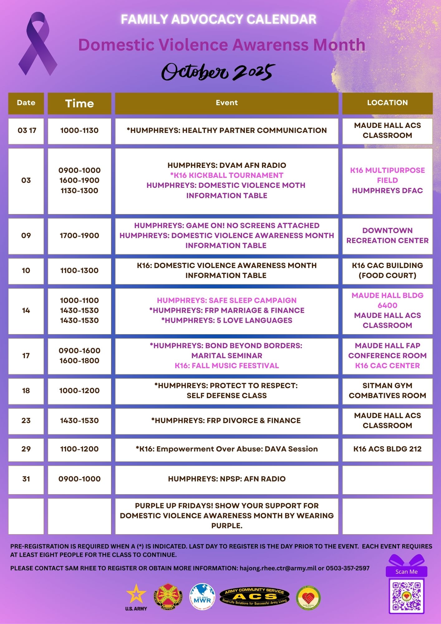 - Mandatory Annual Domestic Violence, Child Abuse Awareness and Detection, (IAW AR 608-18 and 600-20 Chapter 8) training