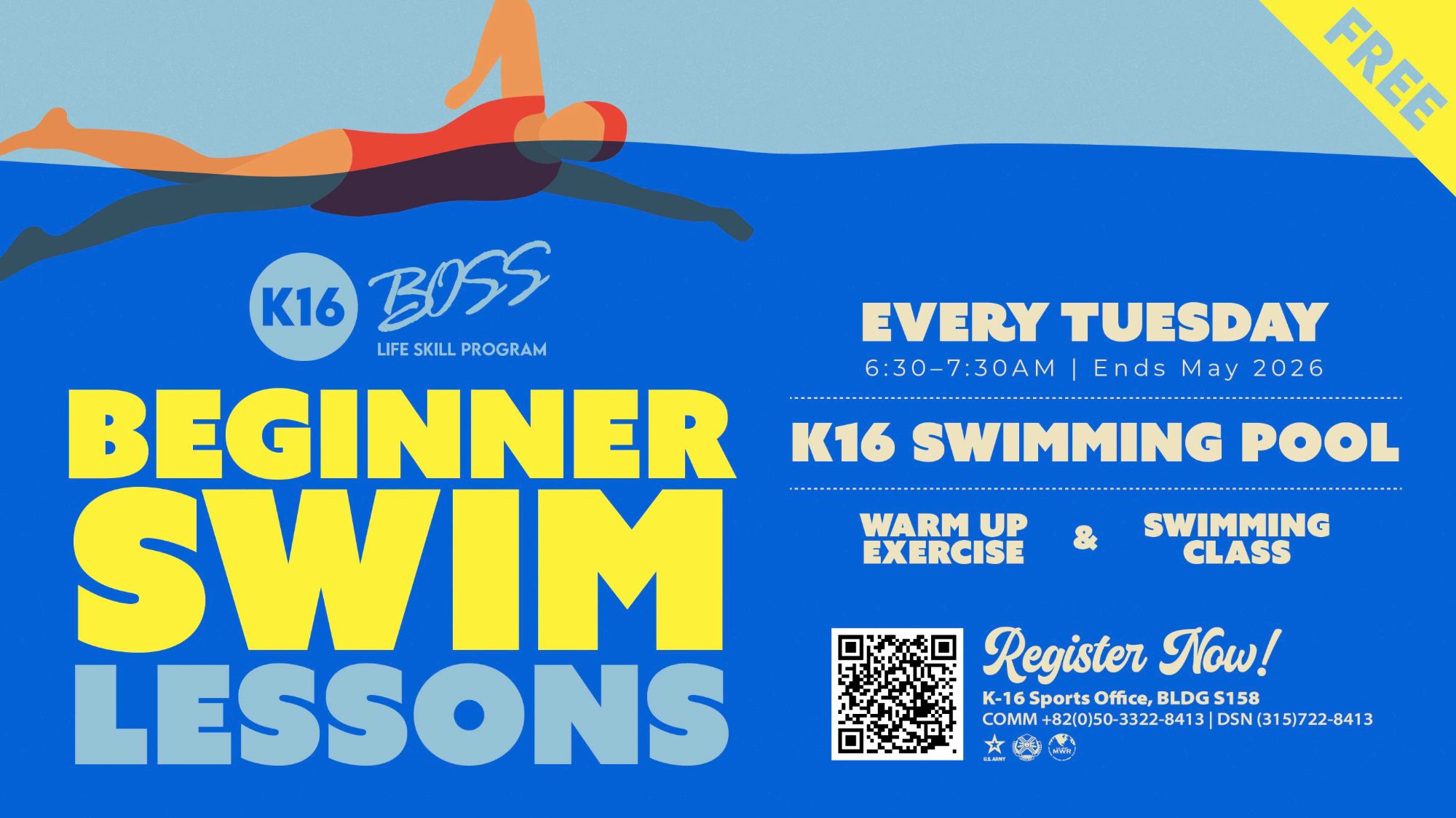 This class will be held during PT session at the swimming pool at K-16.
