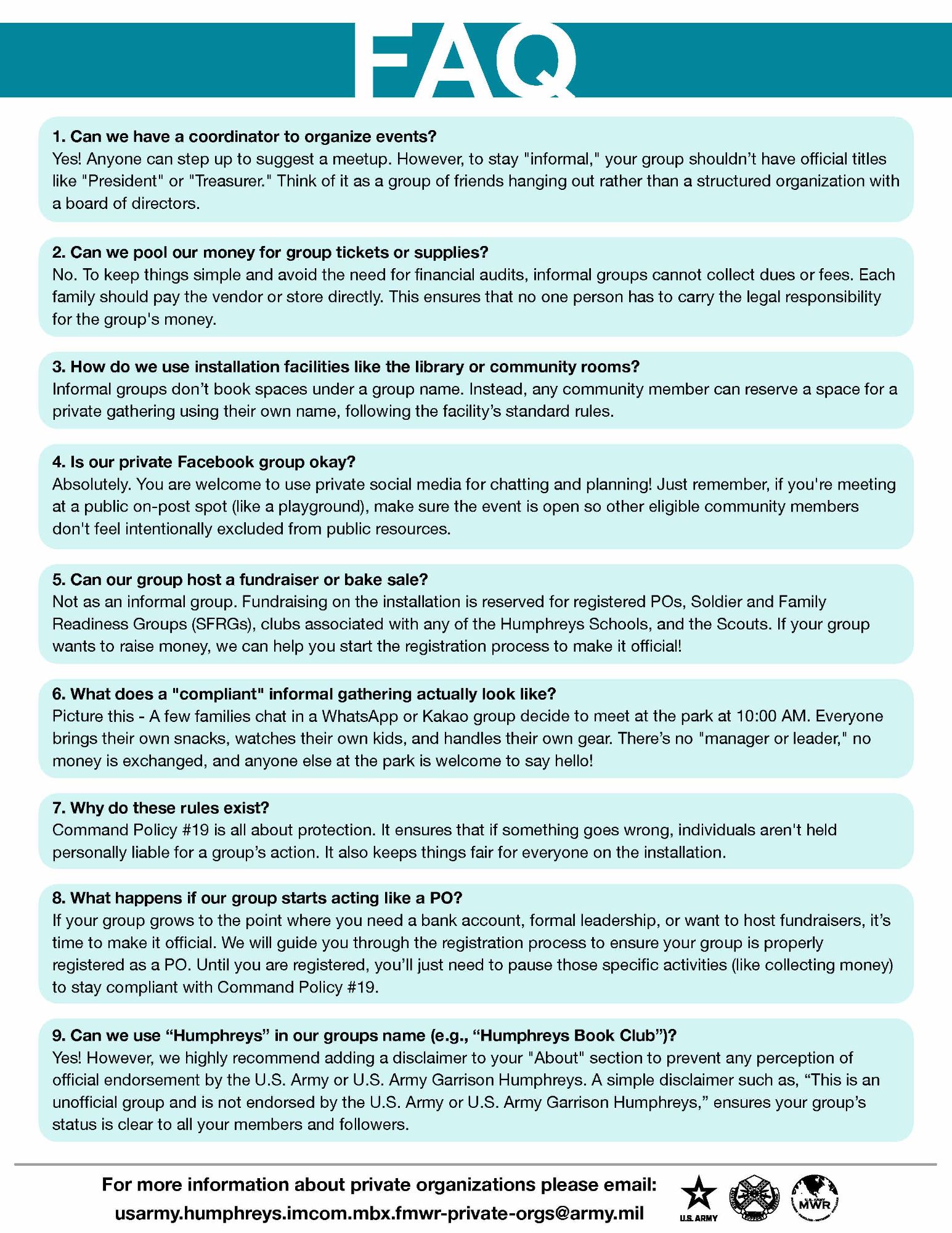 - USAG Humphreys Policy Command Policy #19 Private Organizations
