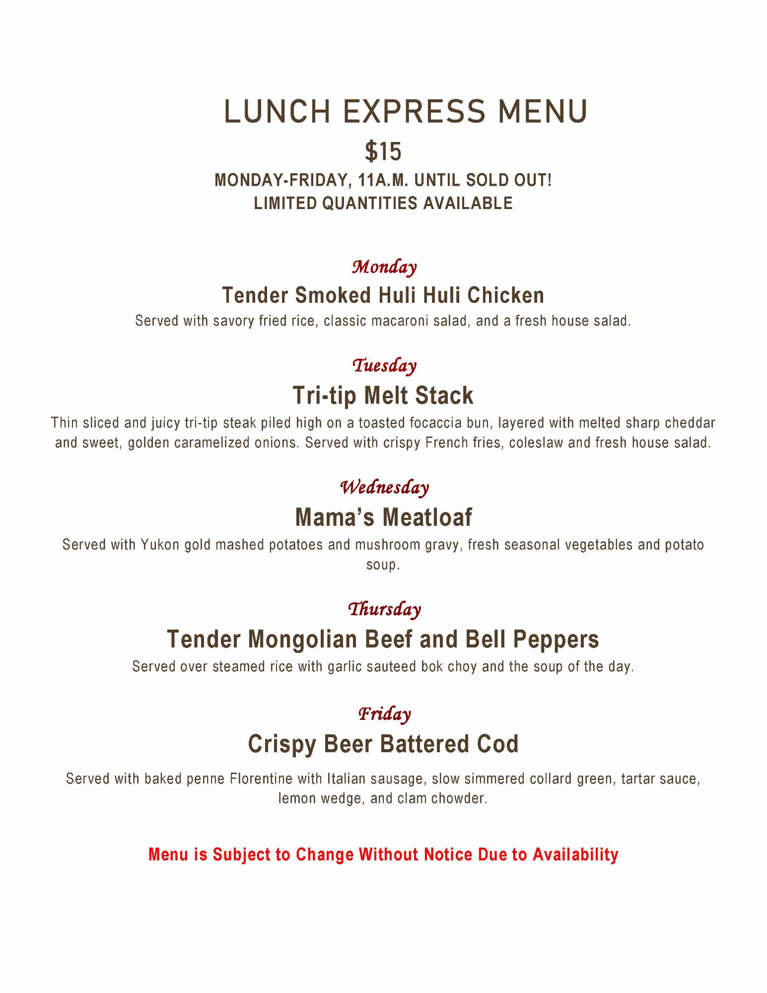 - WEEKDAY LUNCH EXPRESS MENU